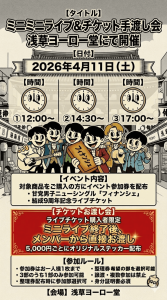 ※チケットお渡し会は準備が出来次第順次ご案内いたしますので、イベントスペースでお待ちいただくようお願いいたします。時間は前後しますので、ご了承ください。