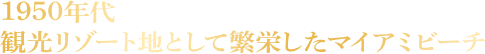 『マジックシティ 黒い楽園』の舞台となるのは1950年代後半のマイアミビーチ。第二次大戦後、マイアミは観光リゾート地として栄え、高級ホテルの建設が進んだ。立ち並んだホテルでは、フランク・シナトラやディーン・マーティンなど多くのエンターテイナー達のショーで賑わった。ラジオショーやテレビショーが放映され始めたのも50年代から。夏はニューヨーク、冬はマイアミから放映されるショーは定番となり、これらのショーはマイアミビーチの宣伝に大いに貢献し、ますます賑わいを増していった。
